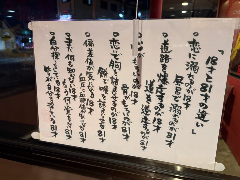 東松戸にある珍来に入って待合室にあったこちらを読んで思わずクスッと笑ってしまいました😅必ず来る老いですがこんな感じで笑いとばして行きましょう🤣