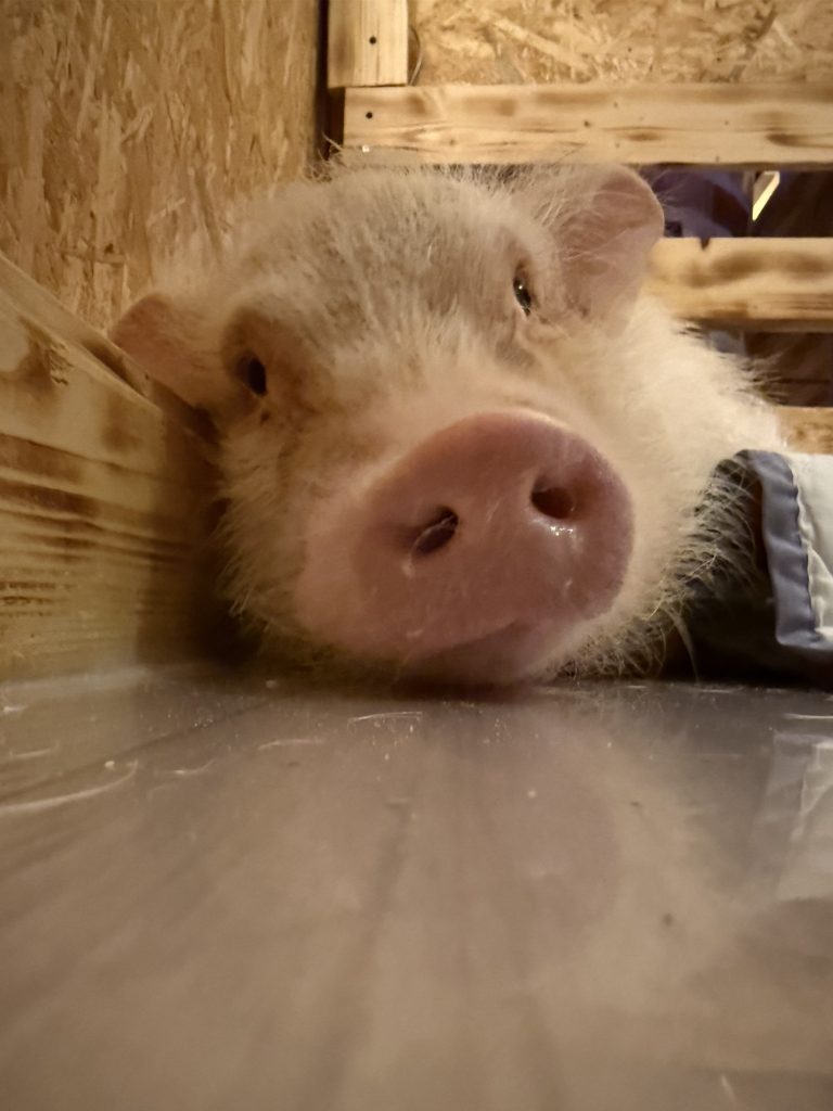 こんにちは川島です。先日保護猫カフェに行ったのですがなんとブタちゃんがいました!大切に飼われていた飼い主さんがアレルギーになってしまったそうで泣く泣く保護されたそう😭