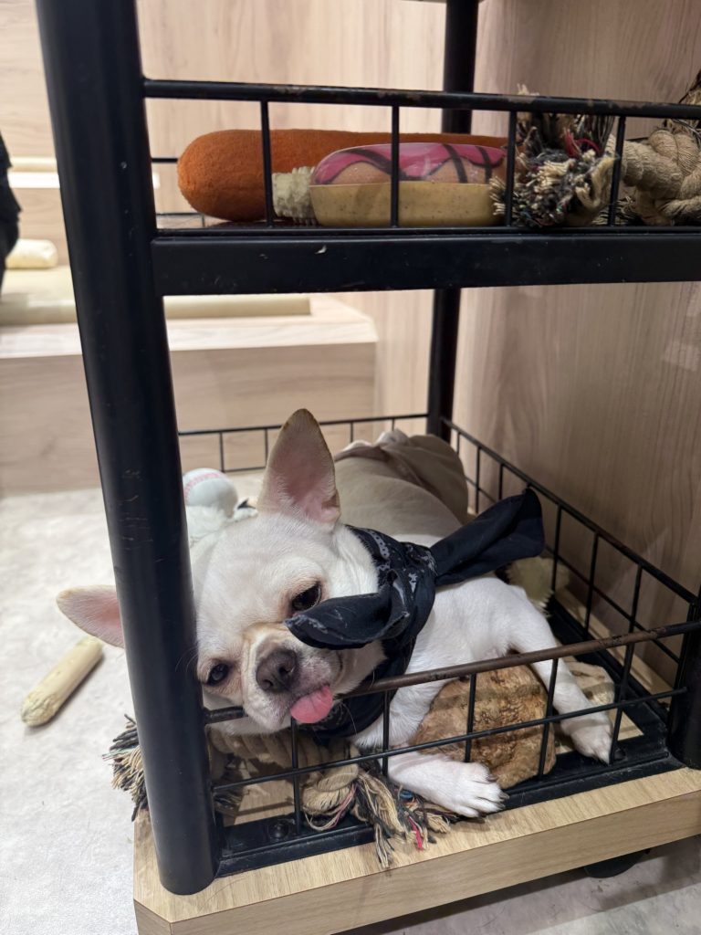 なぜかおもちゃの棚で寝ていたり、隠れてのぞいていたり、とにかく仕草が可愛い。チワワちゃんですがむっちりしていて最初フレンチブルドッグかと思いました😅